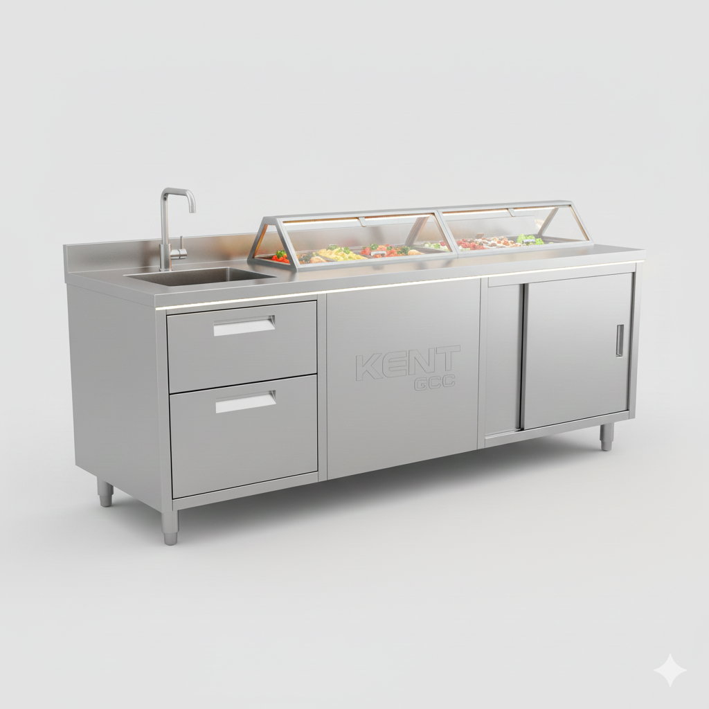 Constructed using premium food-grade stainless steel, these counters provide durable work surfaces, integrated storage, and optional service windows tailored to your business model.