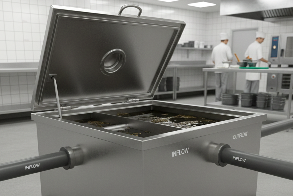 Heavy-duty industrial grease traps designed to separate fats, oils, and grease (FOG) from wastewater, ensuring smooth kitchen drainage and compliance with hygiene standards.