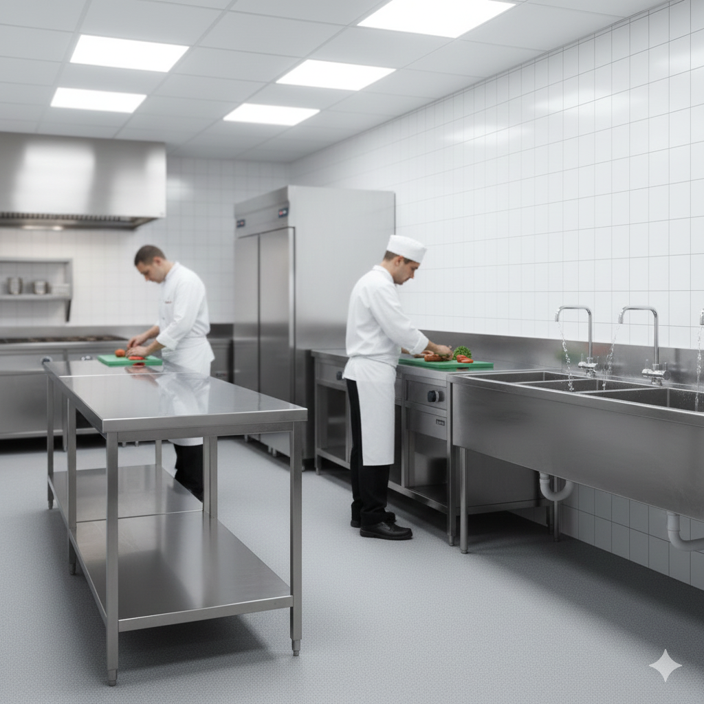Premium stainless steel work tables and sinks engineered for durability, hygiene, and efficient workflow in commercial kitchens.